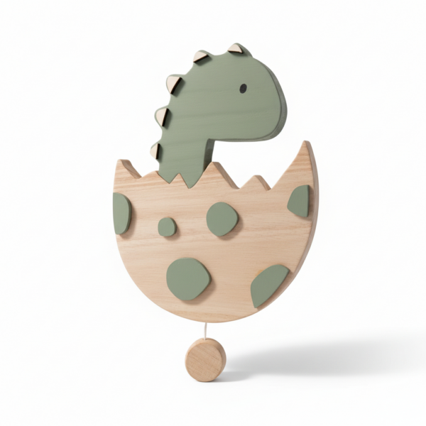 Faites entrer un univers ludique et plein de tendresse dans la chambre de votre enfant avec cette boîte à musique murale en bois représentant un dinosaure sortant de son œuf, entièrement fabriquée à la main dans notre atelier en Dordogne.