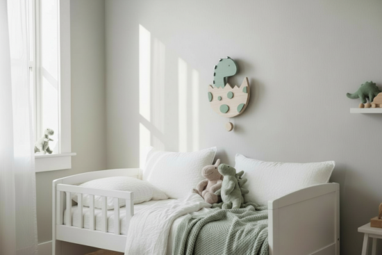 Pensée comme un objet décoratif mural, cette boîte à musique dinosaure trouve facilement sa place dans une chambre de bébé ou d’enfant. Elle constitue une idée de cadeau de naissance ou d’anniversaire originale, durable et fabriquée en France.