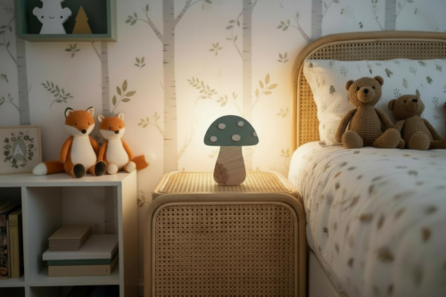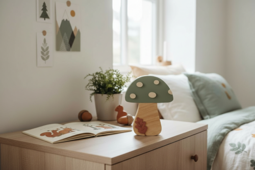Inspirée de l’univers de la forêt, cette veilleuse au design champignon associe des formes douces, des couleurs apaisantes et le charme du bois naturel. Elle diffuse une lumière tamisée et rassurante, idéale pour accompagner les enfants au moment du coucher.